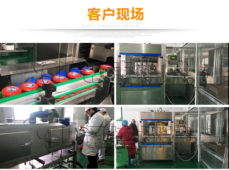 該生產線適合中小口徑三旋、四旋玻璃瓶調味醬的分裝,適合醬料、含顆粒黏稠物料的灌裝,物料接觸部分均采用316不銹鋼