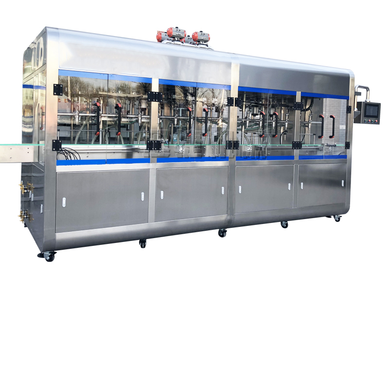 灌裝機儲油箱部分與灌裝機連接法蘭保持原位置,避免沖洗,避免雜質(zhì)進入;儲油箱容積≥600KG,內(nèi)部設(shè)有阻擋板,避免油品輸入過程油品外冒,同時保證灌裝精度;儲油箱位置設(shè)在灌裝機頂部,自帶可視液位計,頂部箱蓋大包圍設(shè)計并且可以打開,具備排氣功能(排出氣泡等);灌裝頭整體上升方式平穩(wěn),不產(chǎn)生震動,高度及寬度可調(diào)。