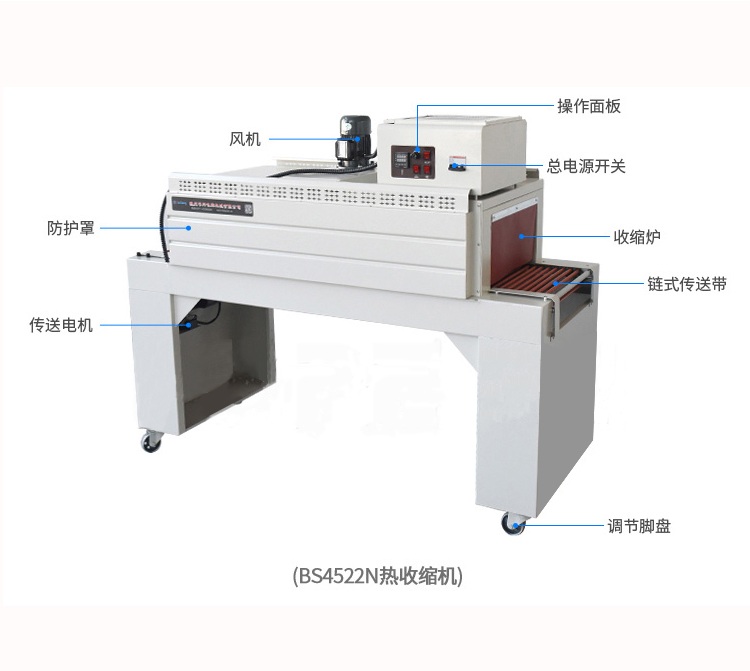 自動(dòng)塑料膜熱收縮包裝機(jī)結(jié)構(gòu)緊湊占地面積小,非常適合配套自動(dòng)包裝流水線(xiàn)完成產(chǎn)品的自動(dòng)無(wú)人化包裝,適合于單個(gè)物品包裝或有底托物品包裝。自動(dòng)送膜打孔裝置和手動(dòng)調(diào)節(jié)的導(dǎo)膜系統(tǒng)以及手動(dòng)調(diào)節(jié)的進(jìn)料輸送平臺(tái),可適于不同寬度和高度的產(chǎn)品,實(shí)現(xiàn)一臺(tái)機(jī)器滿(mǎn)足各種尺寸的包裝物品。
