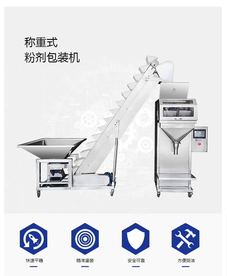 該稱重包裝機適用于農(nóng)藥、飼料、添加劑、洗衣粉、食鹽、味精、白糖、種子、大米等顆粒粉狀物料的定量稱重包裝。