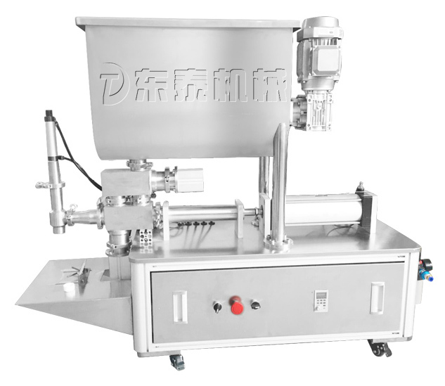 DTG-500-DV型半自動(dòng)辣椒醬灌裝機(jī)結(jié)構(gòu)合理、機(jī)型小巧、性能可靠、定量準(zhǔn)確、操作方便,動(dòng)力部分采用氣動(dòng)結(jié)構(gòu),均采用國(guó)內(nèi)知名氣動(dòng)元件。物料接觸部分均采用304不銹鋼材料制成,符合GMP認(rèn)證的要求。采用加大攪拌料斗,料斗容積可達(dá)120L,立的全鋁外殼銅芯攪拌電機(jī),變頻調(diào)速,可適應(yīng)于各種醬料的灌裝??筛鶕?jù)用戶需要在機(jī)型范圍內(nèi)任意調(diào)節(jié)灌裝量及灌裝速度,灌裝精度高。灌裝悶頭采用防滴漏裝置。